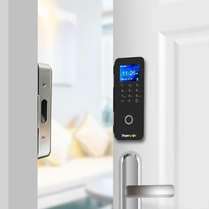 Fingerprint door lock menggabungkan fungsi lock dan fingerprint reader pembaca sidik jari ke dalam satu.